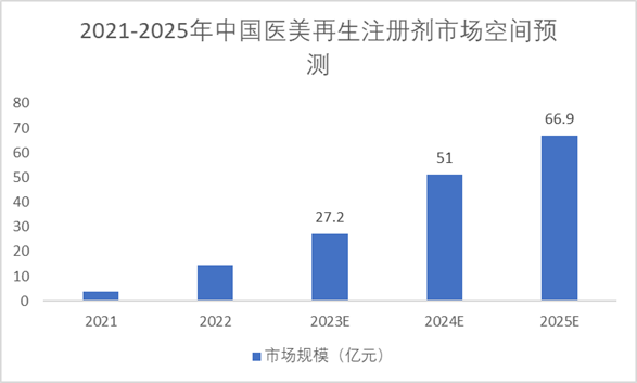 射劑市場(chǎng)空間將進(jìn)一步擴(kuò)大;此外,在功能和療效方面,醫(yī)美再生注射劑對(duì)傳統(tǒng)玻尿酸注射劑市場(chǎng)具有較強(qiáng)的可替代性,隨著中國(guó)輕醫(yī)美行業(yè)整體興起,消費(fèi)者對(duì)醫(yī)美產(chǎn)品了解的深入以及消費(fèi)能力的提升,其去皺抗衰、緊致塑形等醫(yī)美需求將不斷增長(zhǎng)。