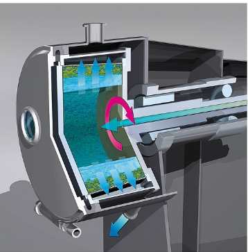 臥螺離心機(jī)即臥式螺旋卸料沉降離心機(jī)的簡(jiǎn)稱,是一種螺旋卸料沉降離心機(jī)。主要由高轉(zhuǎn)速的轉(zhuǎn)鼓、與轉(zhuǎn)鼓轉(zhuǎn)向相同且轉(zhuǎn)速比轉(zhuǎn)鼓略低的帶空心轉(zhuǎn)軸的螺旋輸送器和差速器等部件組成。當(dāng)要分離的懸浮液由空心轉(zhuǎn)軸送入轉(zhuǎn)筒后,在高速旋轉(zhuǎn)產(chǎn)生的離心力作用下,立即被甩入轉(zhuǎn)鼓腔內(nèi)。高速旋轉(zhuǎn)的轉(zhuǎn)鼓產(chǎn)生強(qiáng)大的離心力把比液相密度大的固相顆粒甩貼在轉(zhuǎn)鼓內(nèi)壁上,形成固體層(因?yàn)榄h(huán)狀,稱為固環(huán)層);水分由于密度較小,離心力小,因此只能在固環(huán)層內(nèi)側(cè)形成液體層,稱為液環(huán)層。