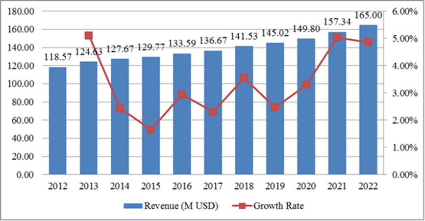 圖全球醫(yī)用聽診器收入(百萬美元)現(xiàn)狀和展望(2012-2022)